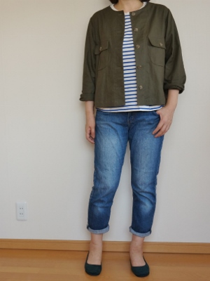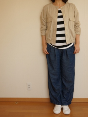 全体的にゆったりしたシルエットですが、短めの着丈なのでスッキリとした印象です。