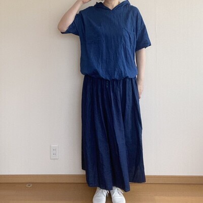 バストや肩回りはゆったりサイズですが、裾は好きな分量に絞ってメリハリを。
