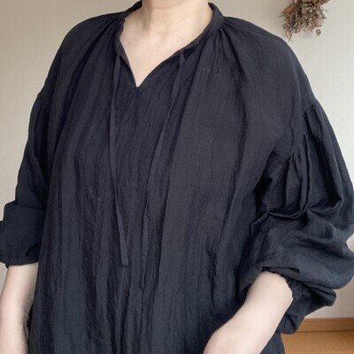 薄手の生地を使用してください。 60番手のリネン、リネンローン、綿ローン、ギャザーが入りやすい生地、少し透け感のある生地も合います。 40番のリネンでも、くったりとろみのある生地なら大丈夫です。広がりやすい生地は袖が大きく見えてしまうのでご注意ください。 | |