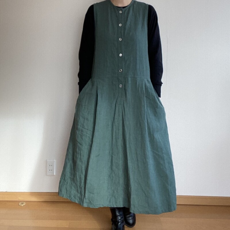 40番手のリネン全般。普通地くらいが適しています。 25番手の場合、前立てとパイピングは別布(薄地か普通地)を使用することをお勧めします。 布帛専用としていますが、テンションの低いニット(やや軽さのある生地)なら制作可能かと思います。 ただし、布帛用に仕様になっていますので裾を3つ巻き→2つ折りにするなど、ニットに適した仕様に変更してください。 | |