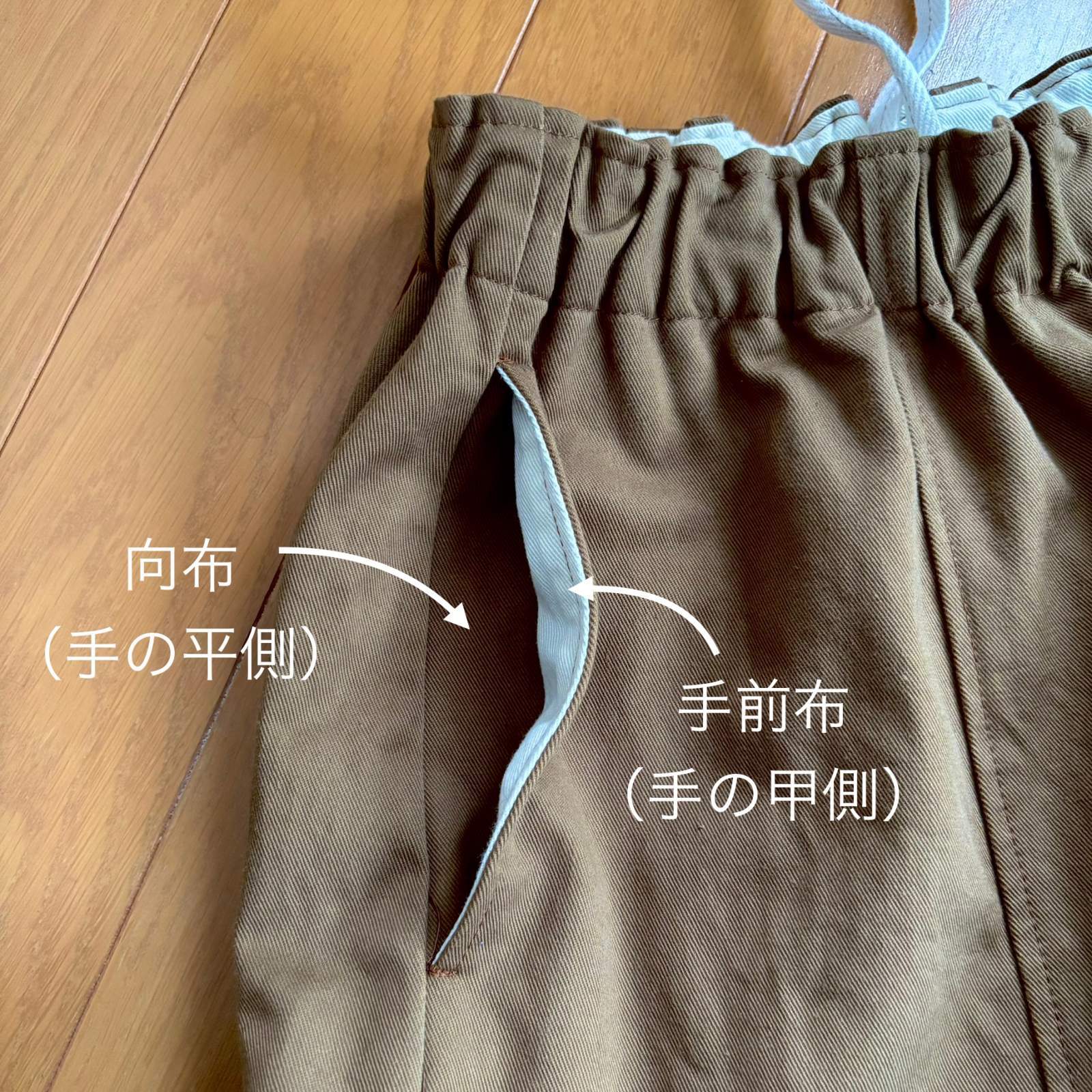 | 総ゴム入り/内側にリボン付き※省略可 (裏側ポケット部分) | 厚手の生地の場合は手前布と見返しは別布に |
