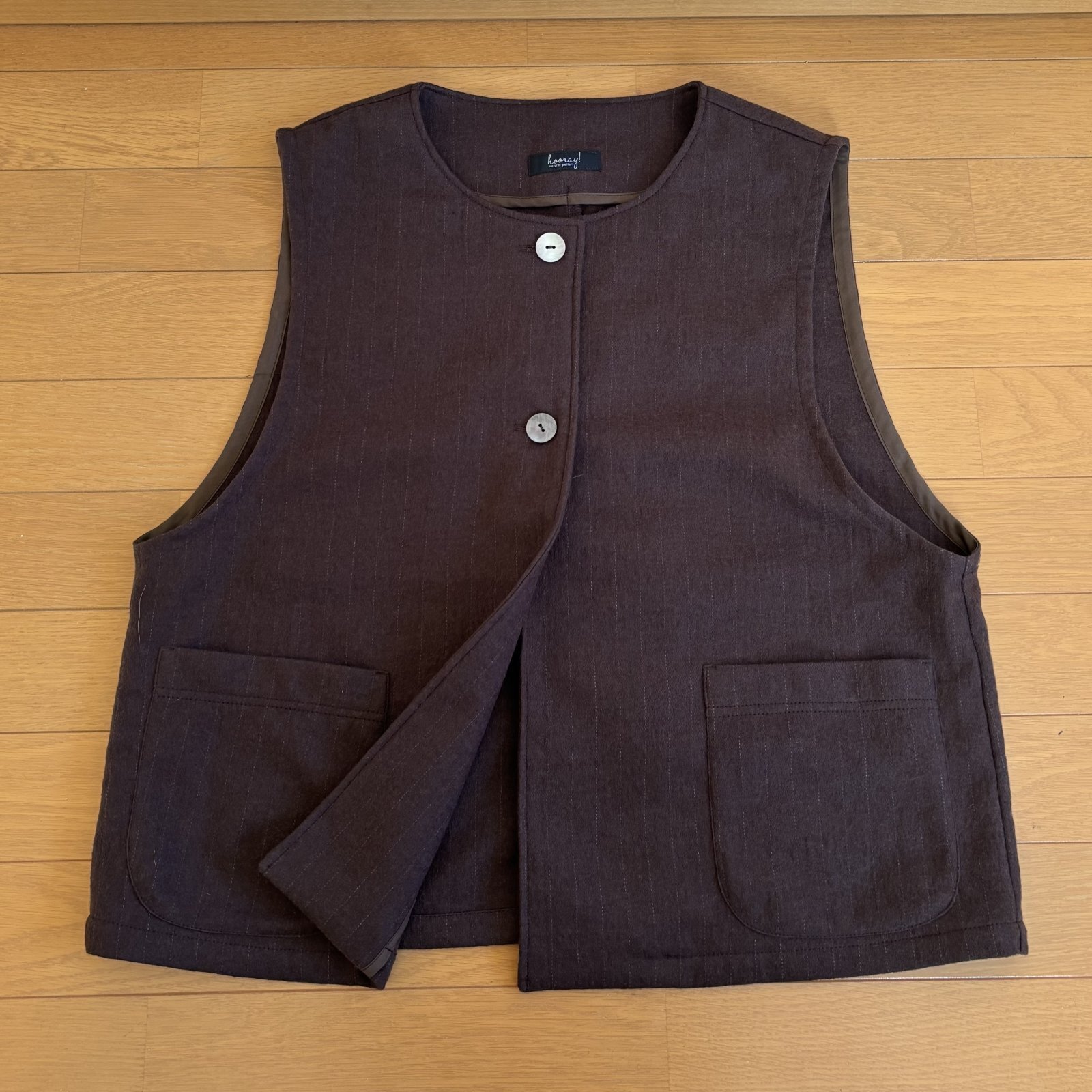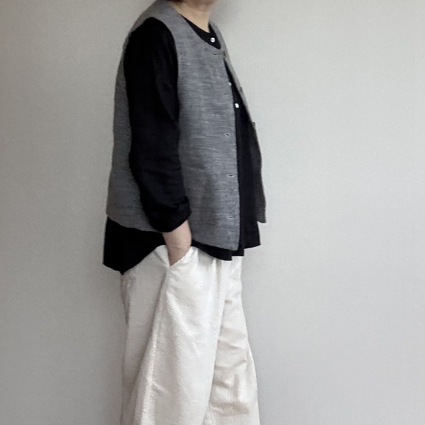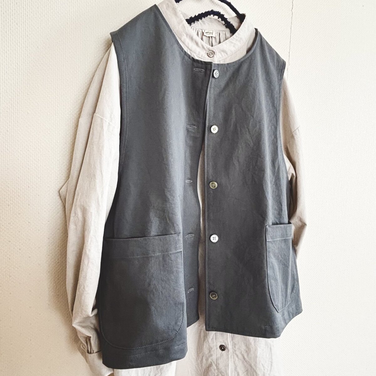 何にでも合わせやすい前開きのクルーネックベスト