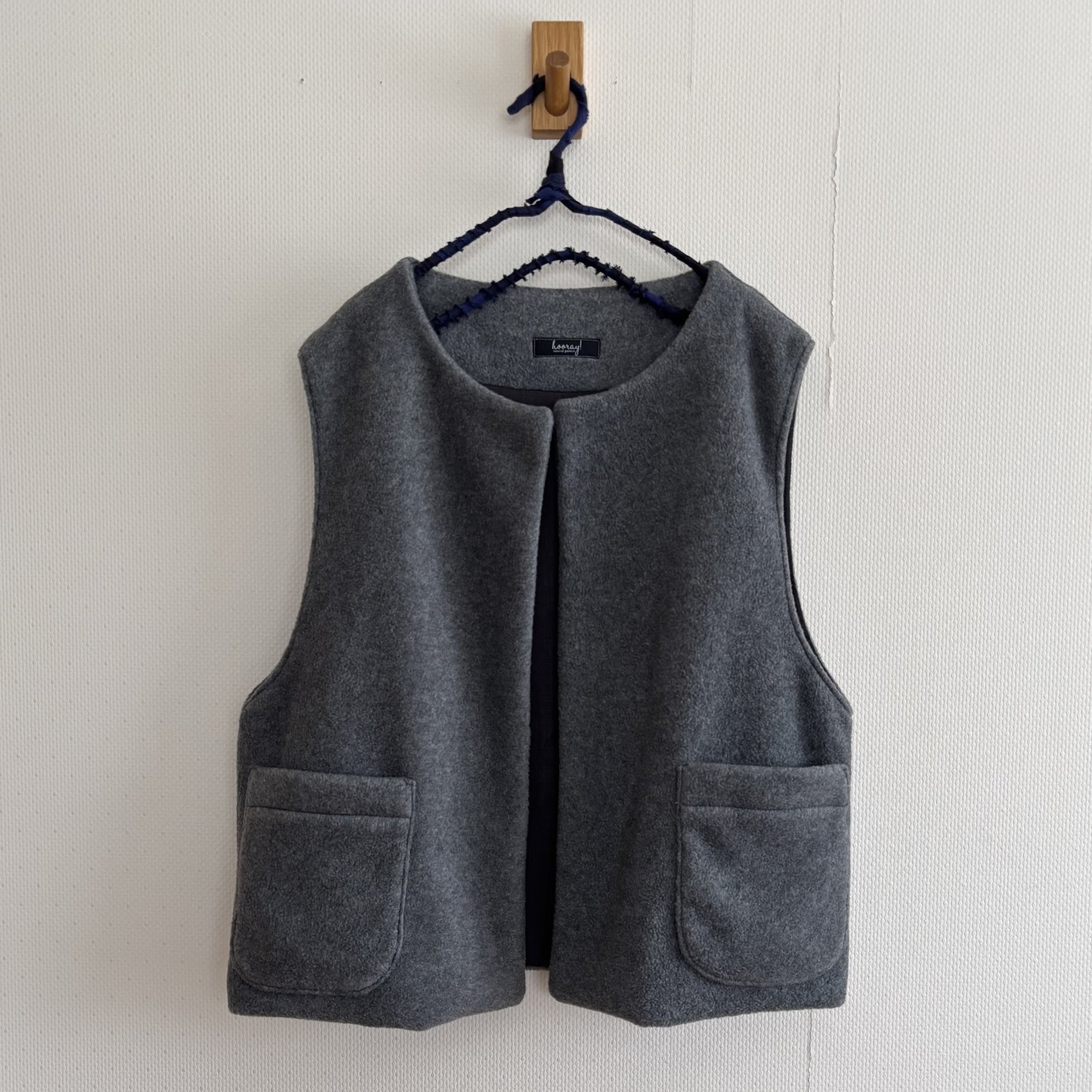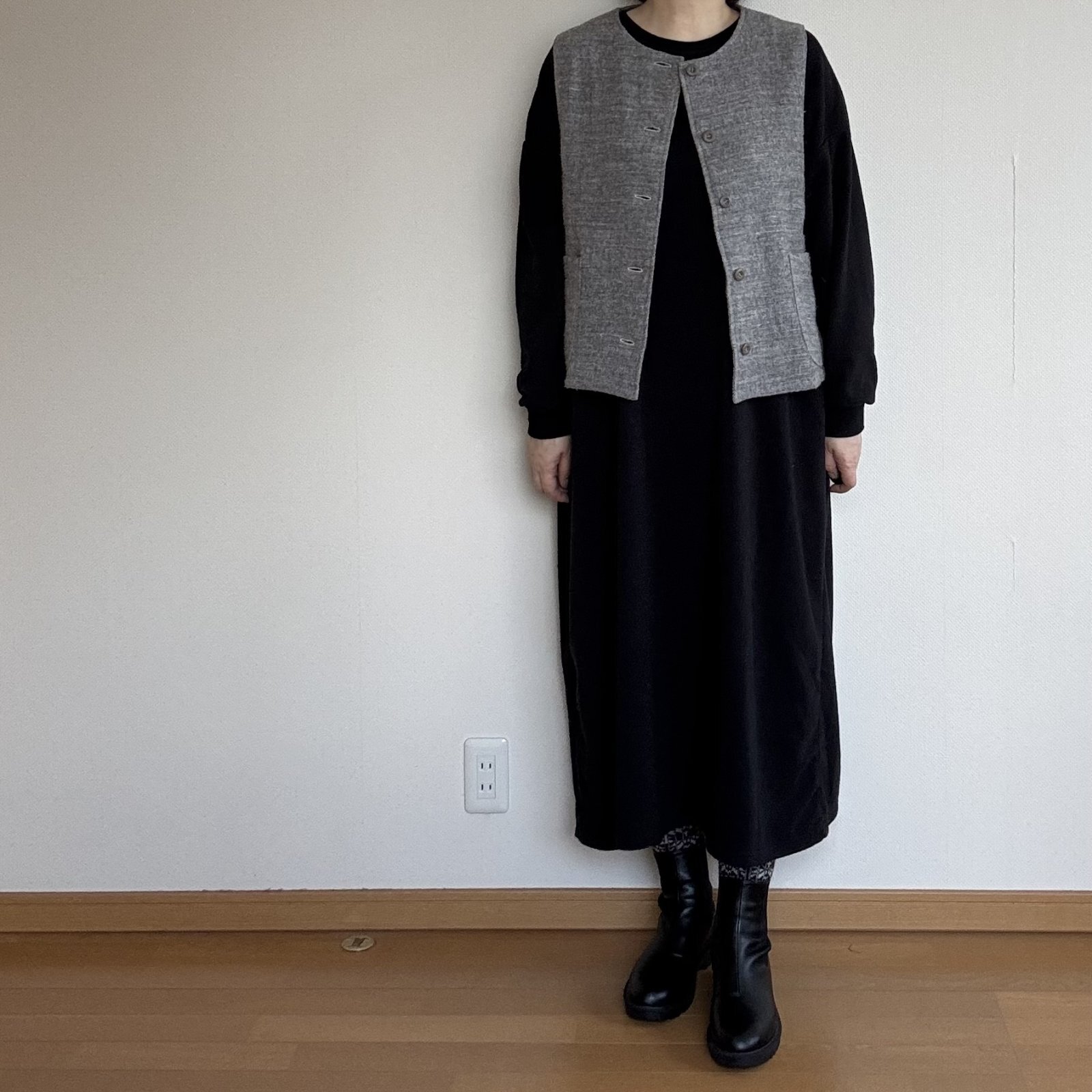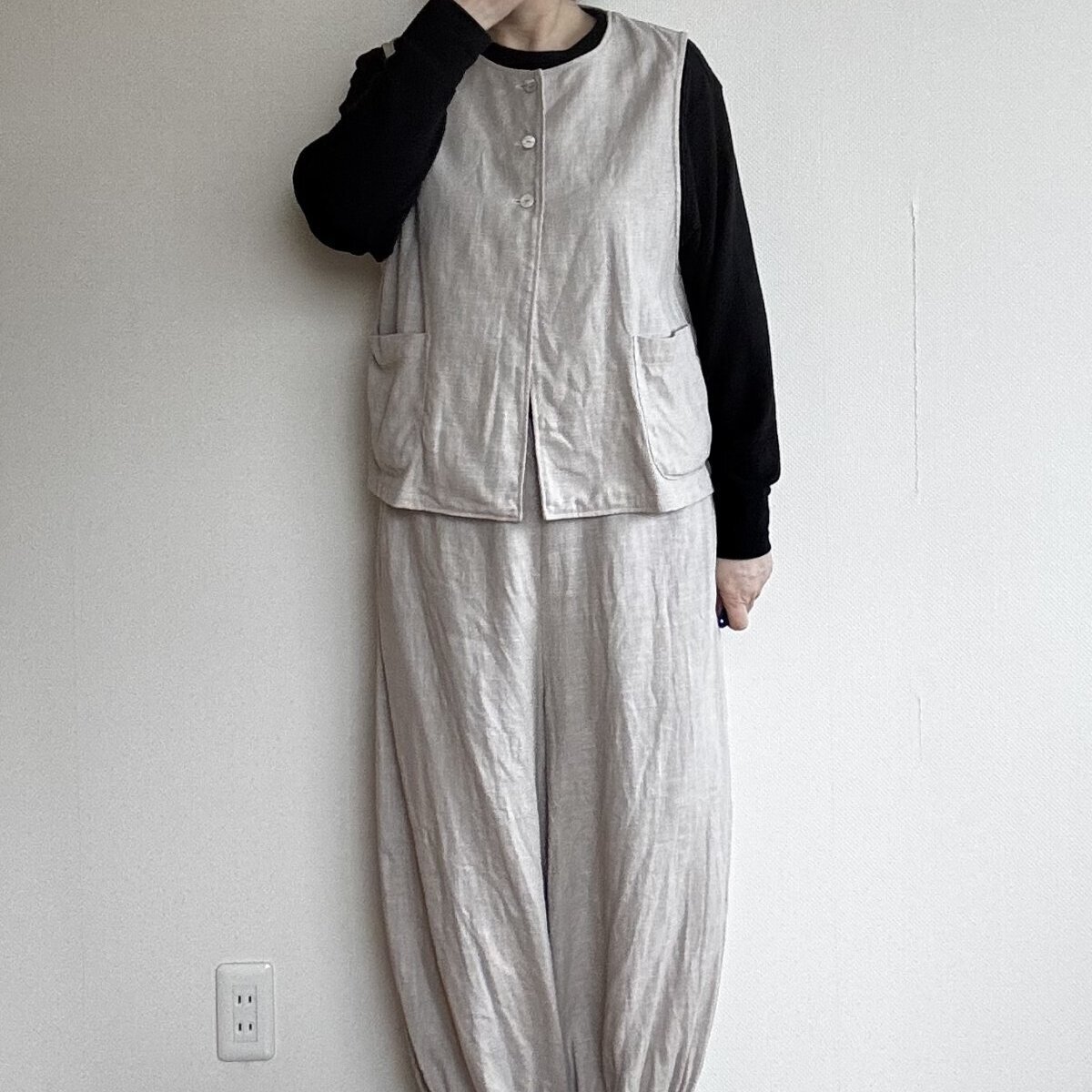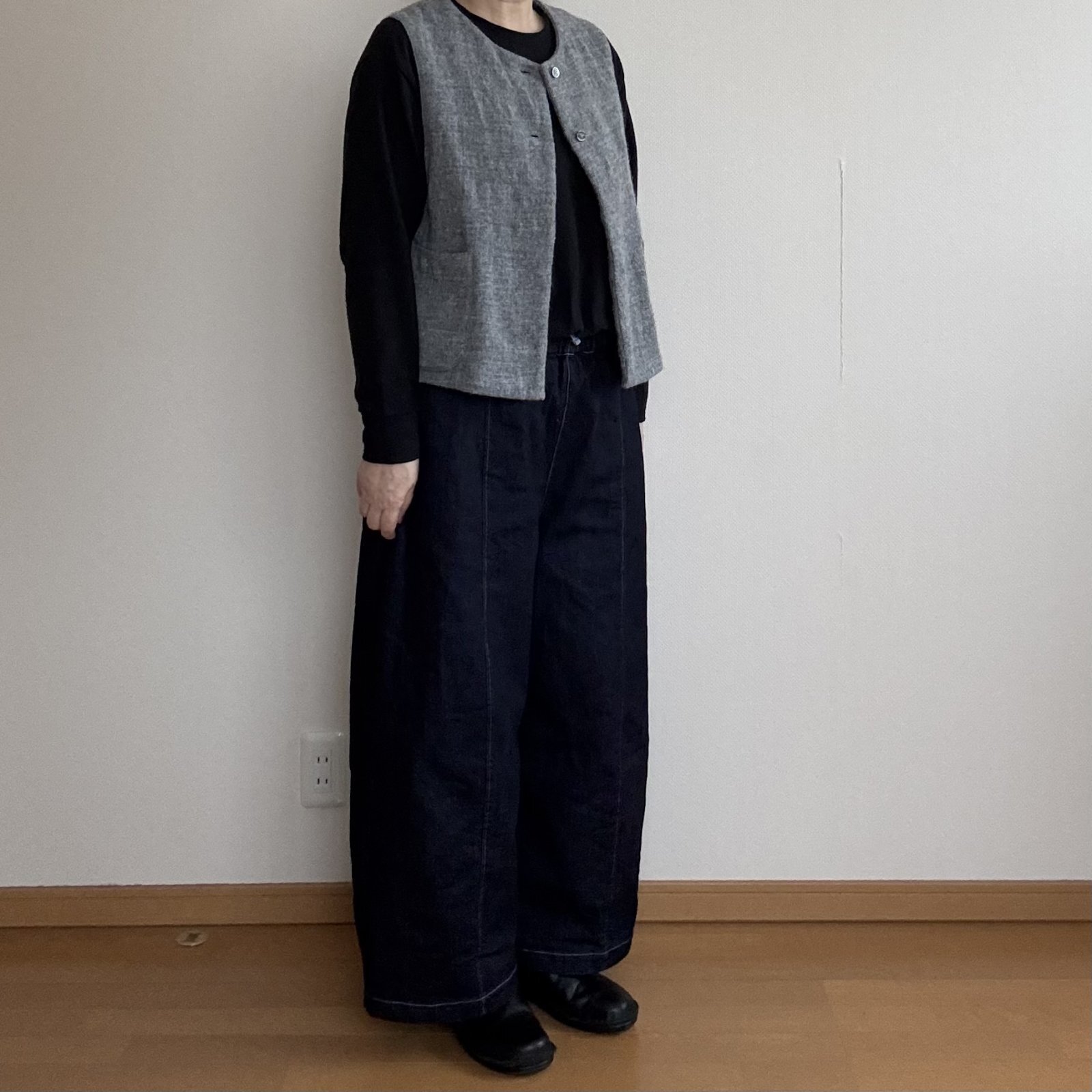 何にでも合わせやすい前開きのクルーネックベスト