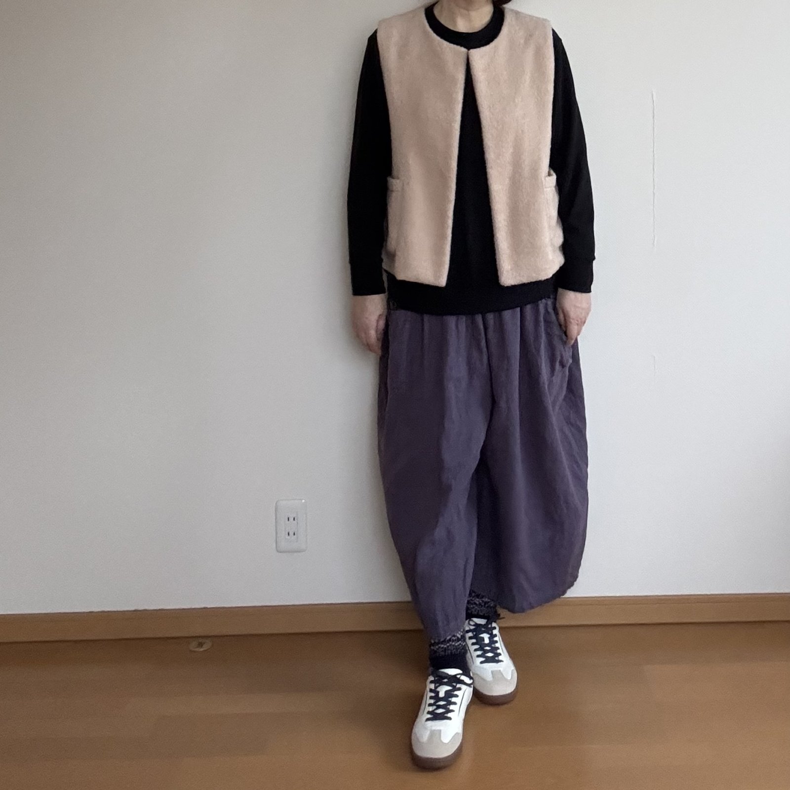 フェイクファーはポケットなしボタンなしがおすすめです。